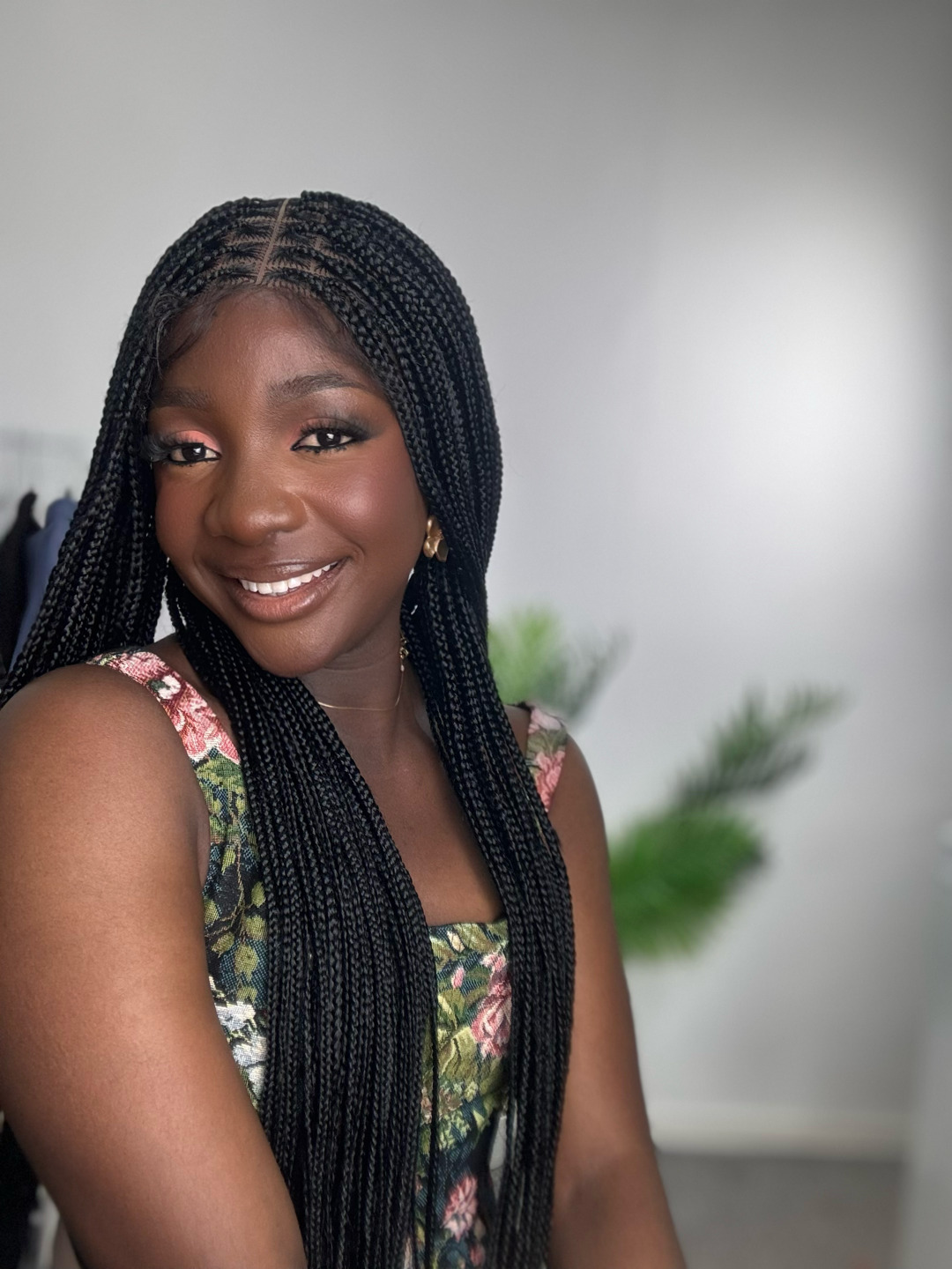 Meet Adebanke she’s effortlessly stunning with her classic jet black knotless braids that radiate timeless elegance. Perfect for the woman who wants a sleek, versatile protective style without spending hours in the salon.