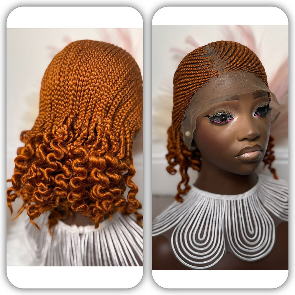 * 1x Premium “Bùṣírẹ” Cornrow Braided Wig with Curly Ends (Full Lace)