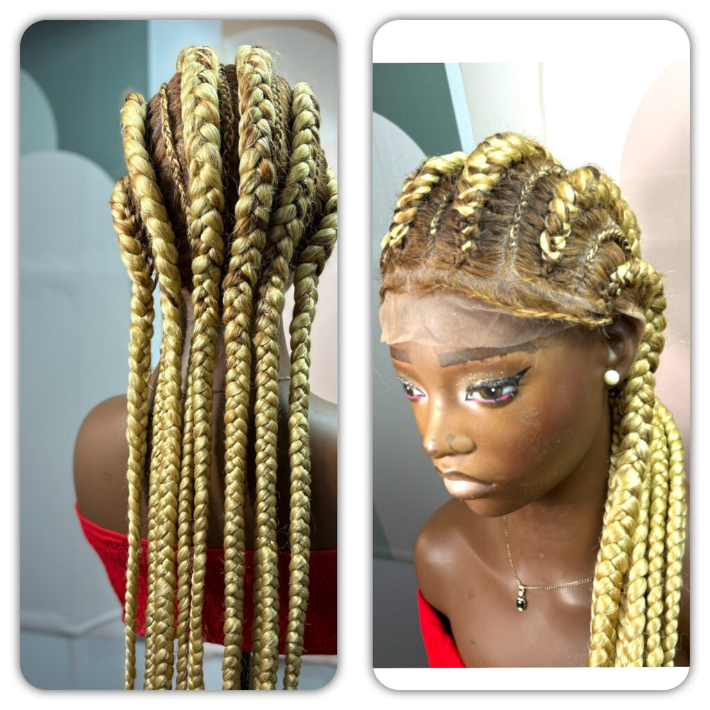 * Hand-Braided Cornrows with elegant blonde honey tone
