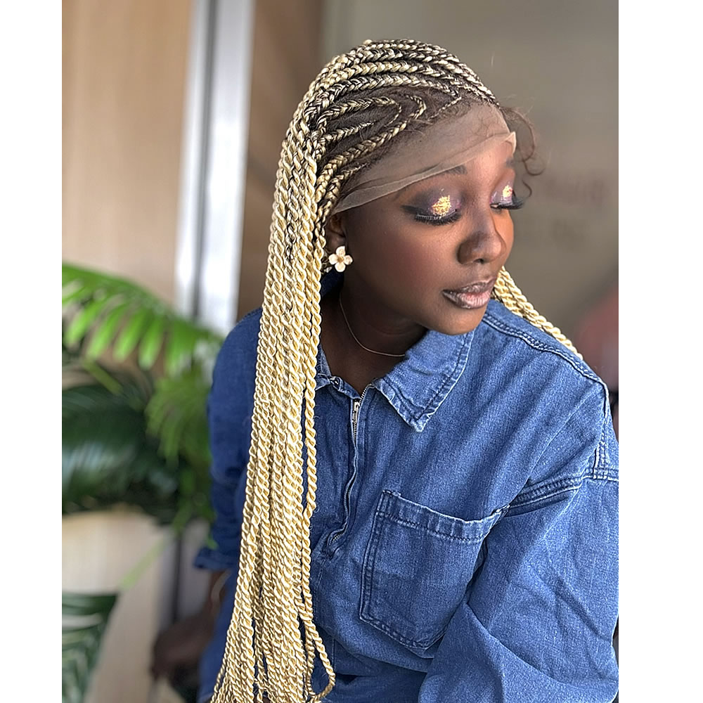 Hand-crafted Senegalese twists with elegant cornrow crown
