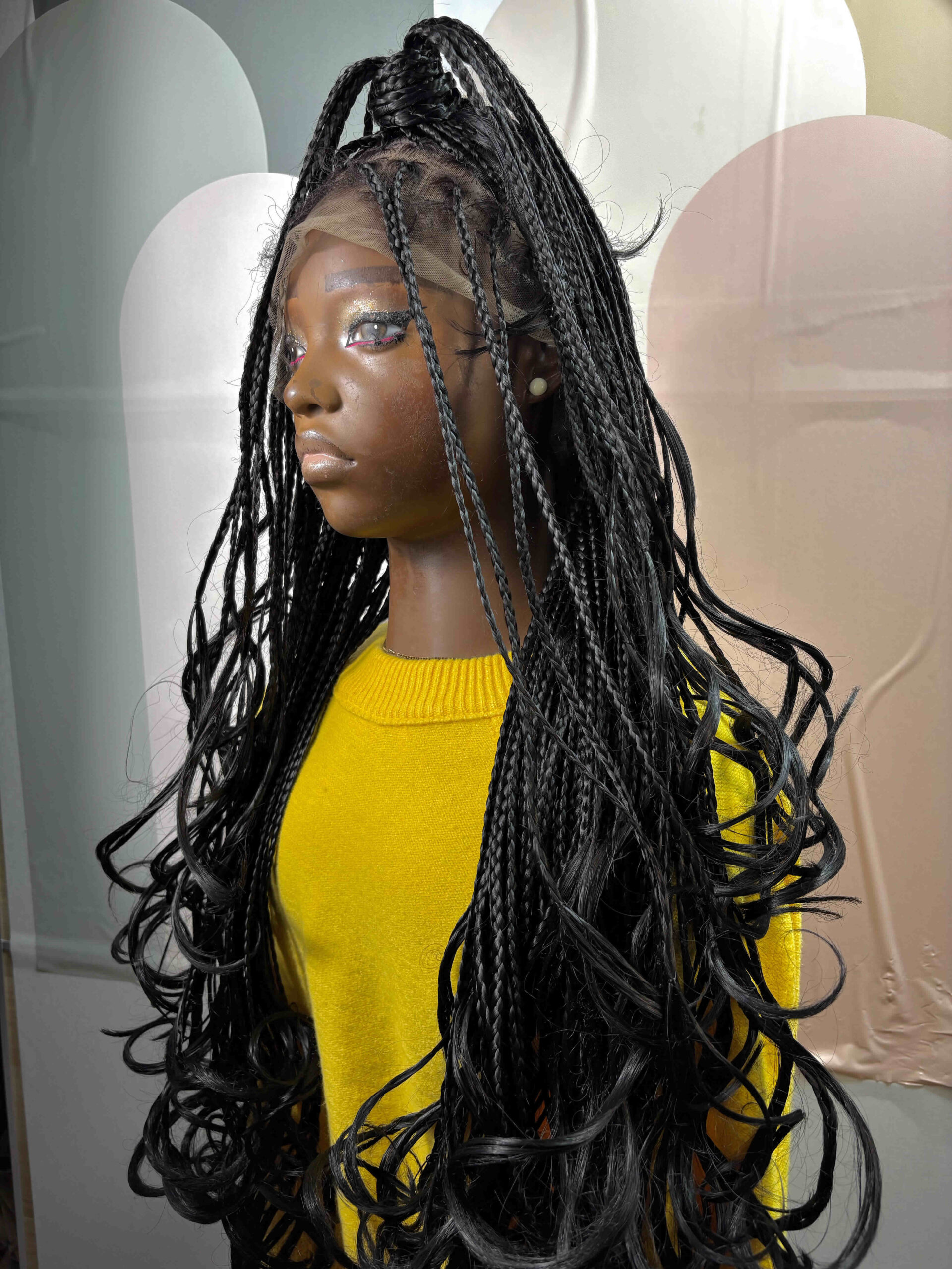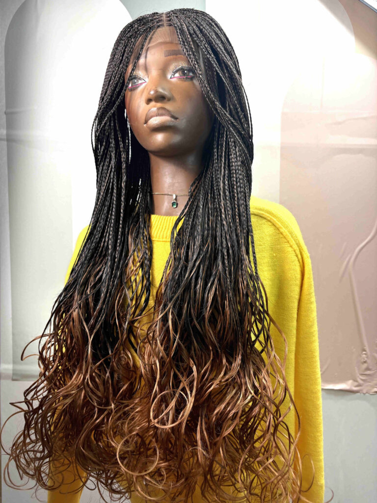 Meet Imade, she’s absolutely stunning! A gorgeous French curl braided wig with luxuriously soft, bouncy curls that cascade beautifully down your back. Perfect for the woman who loves effortless bohemian elegance with a touch of glamour. The name Imade (ee-MAH-deh) means “my daughter” in Edo and symbolizes something precious, cherished, and beloved. Wearing this wig makes you feel treasured and beautiful, like the daughter of royalty. Each braid is meticulously crafted for a natural, lightweight feel, finished with French curls that are extremely soft to the touch , you won’t be able to stop running your fingers through them!