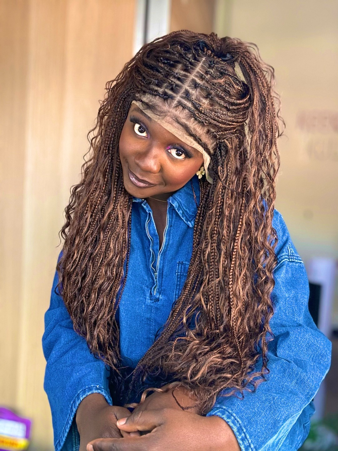 Meet Nia a stunning full lace box braid wig in gorgeous brown ombre. Perfect for the woman who wants natural-looking dimension without hours in the salon.
