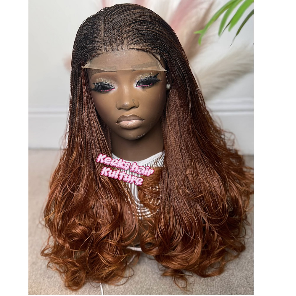 Type: Human Hair on Net Base Color: Black to Honey Blonde Ombre Braided