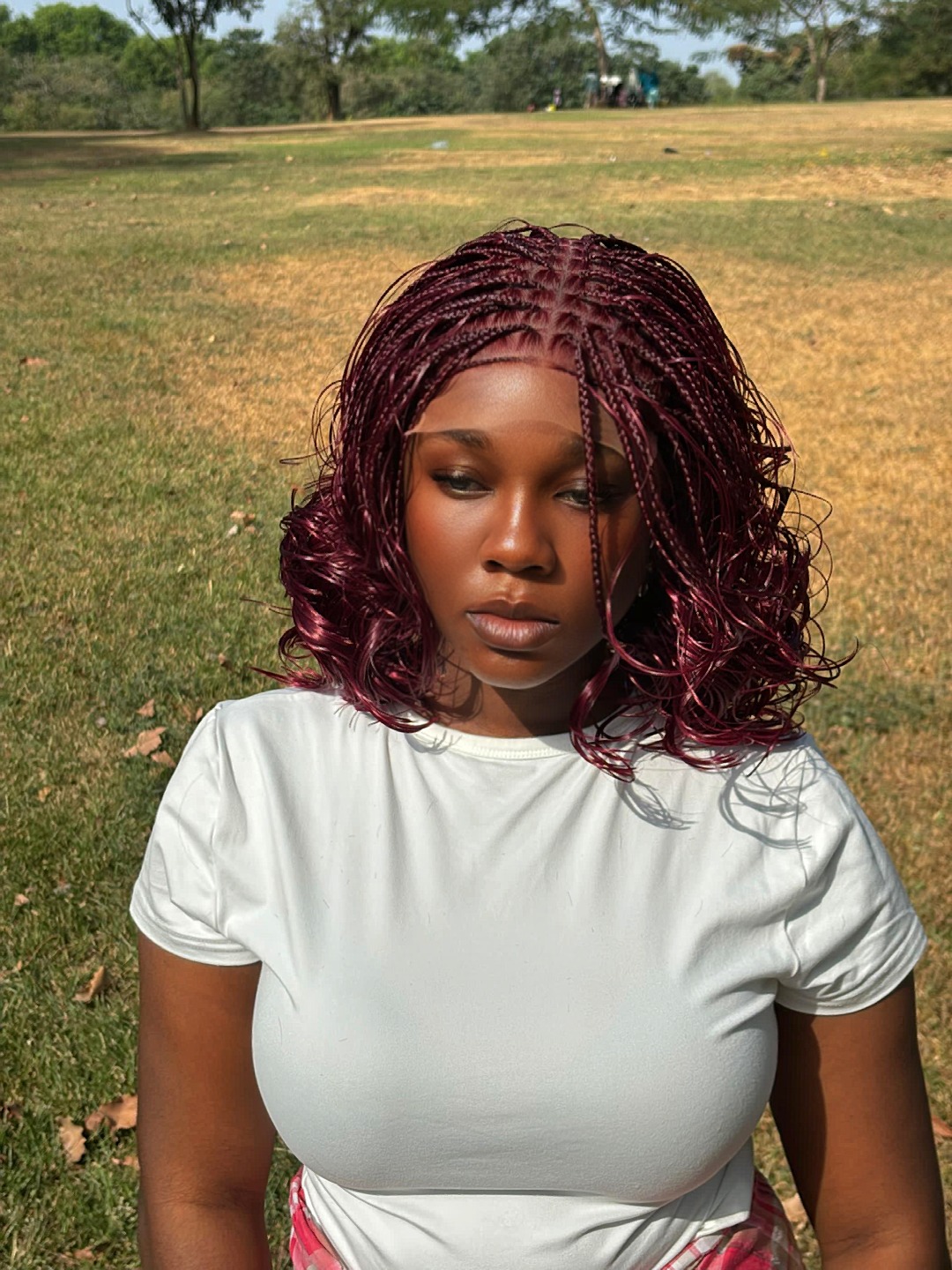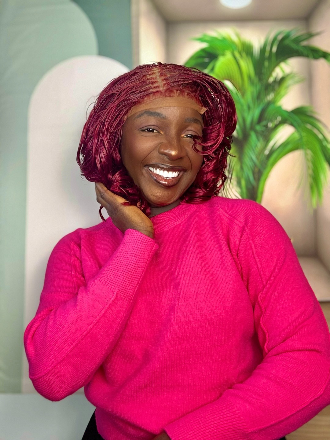 The rich burgundy color adds warmth and personality, making this wig perfect for women who aren’t afraid to stand out. Each braid is hand-crafted with precision for a flawless look.
